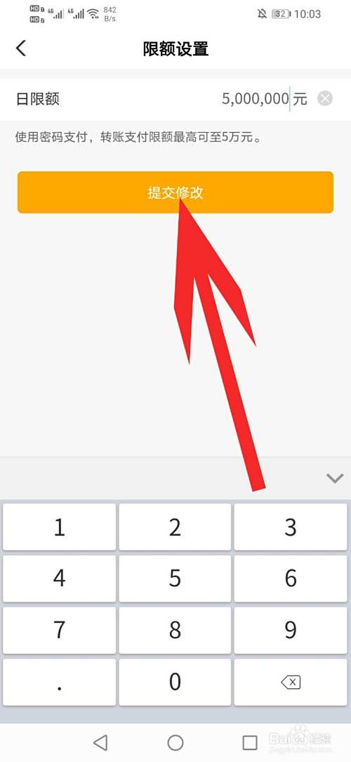 最后更改日限额度,点击提交即可解决银行卡交易达到最大次数的问题。