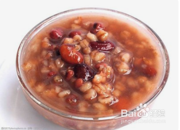 锅里面倒水,大米、小米、高粱米、麦子米、赤小豆、红枣全部倒进锅里。大火烧开后,小火熬20分钟就可以啦!