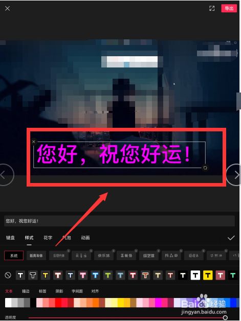 我们打开素材以后,点击【文本】——【新建文本】——【输入文字】——可以【选择一个文字颜色】。按照这个顺序即可实现文字的输入。