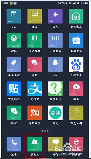首先我们打开小米的黄页,黄页可以在“联系人”中找到(如下图);