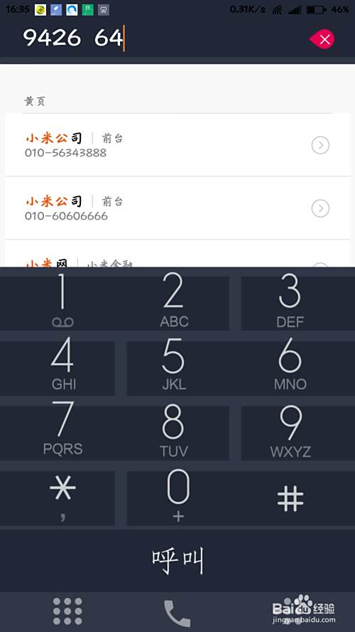 我们同时也可以直接在拨号界面操作,比如你想拨打小米的官方电话,就可以直接在拨号键盘用拼音拼写小米即可,界面会自动跳出小米的官方电话;