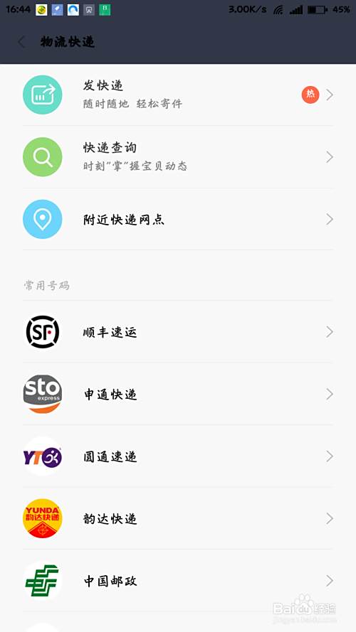 接下来介绍一下黄页的快递查询功能,我们在黄页界面找到“物流快递”点击“更多”,我们发现不但可以查询快递的物流状况还能发快递和查询附近的快递网点;