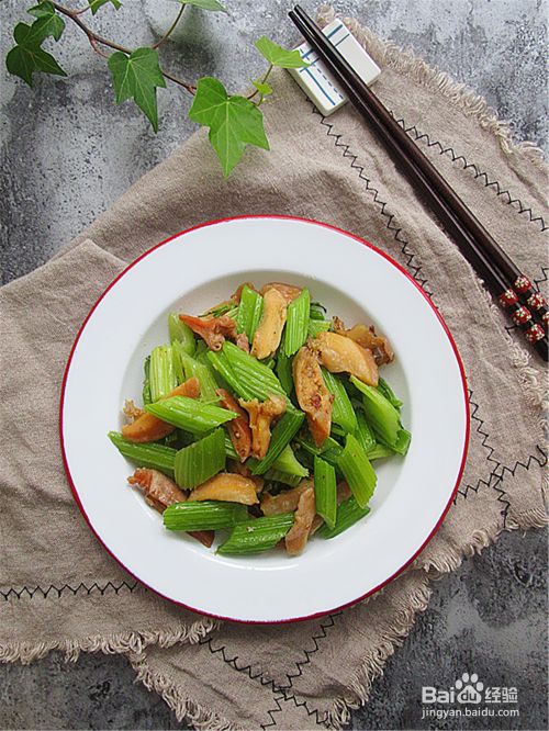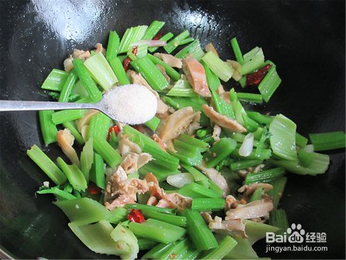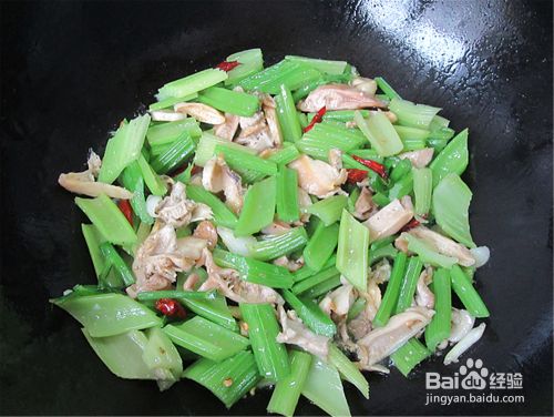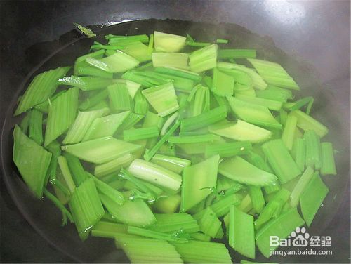 加芹菜炒。如果你喜欢酱油,可以加一勺酱油