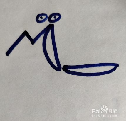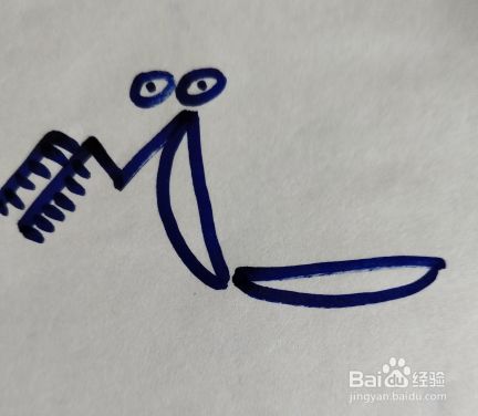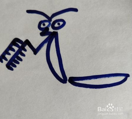 在上侧两个小圆圈的下面画上一个撇折曲线,作为大螳螂的嘴巴。