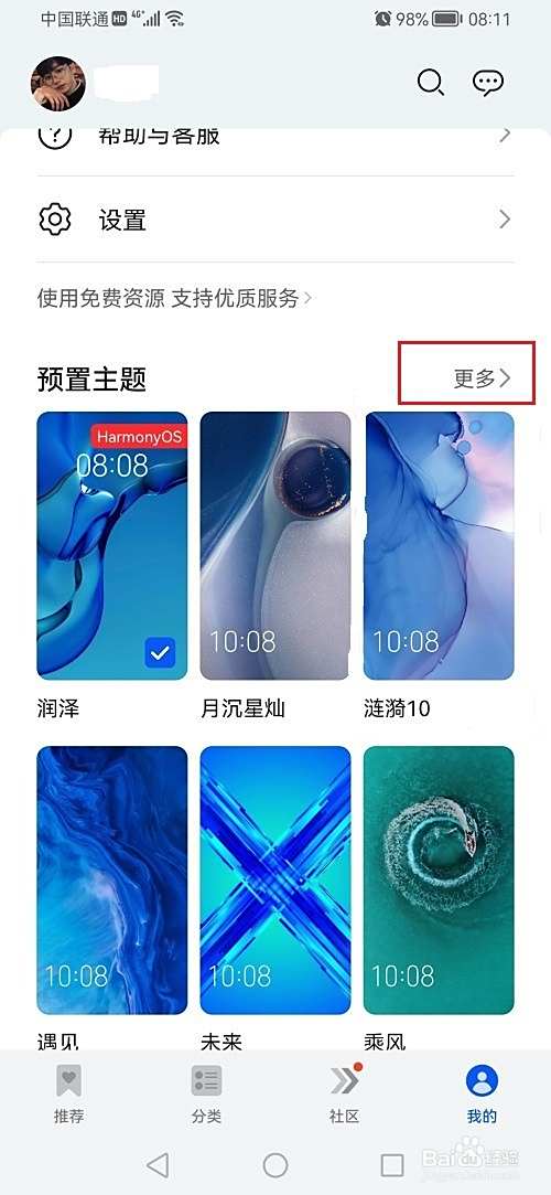 第三步进去我的界面之后,下滑界面到底部,点击预置主题的更多