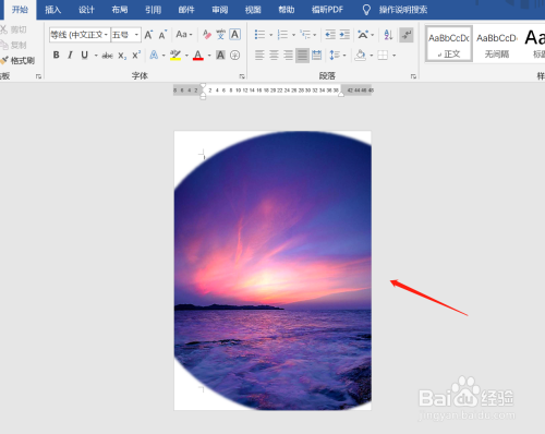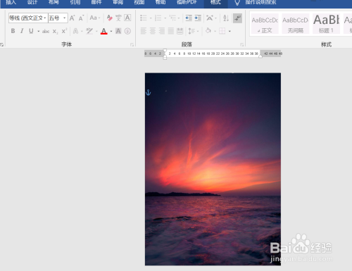 选中图片,拉动图片边沿,调节背景图片大小,使得背景覆盖文档页面。