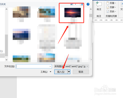 打开word文档,点击“插入”、“图片”。