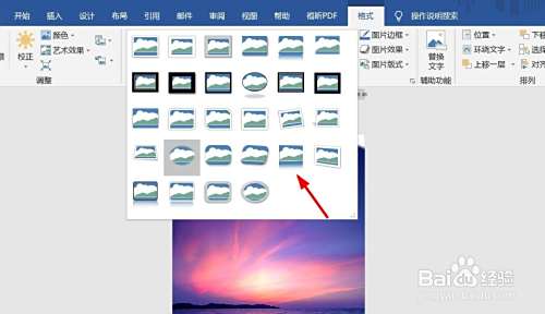 选中图片,点击格式,还可以设置背景图片的显示样式。选中其中一种样式,效果如图所示。