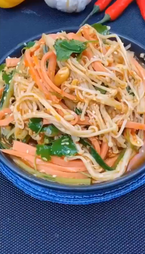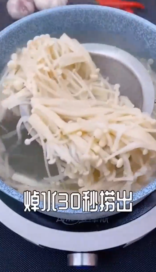 凉拌金针菇是一道菜品,金针菇经沸水焯过后过凉水可使其爽脆,具体怎么做?一起来学习一下吧。
