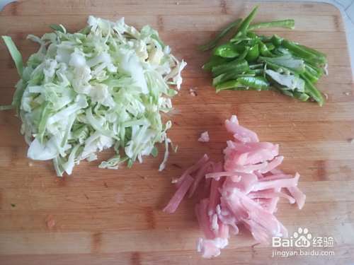 准备好猪里脊肉、圆菜和尖椒,把猪里脊肉、圆菜和尖椒全部切成丝。