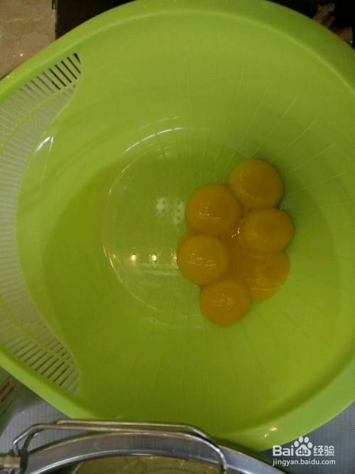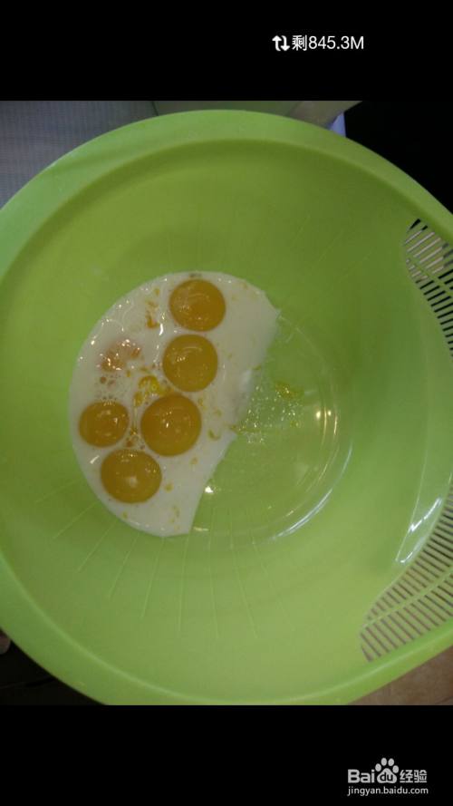 蛋黄盆里加入纯牛奶,玉米油,搅拌均匀