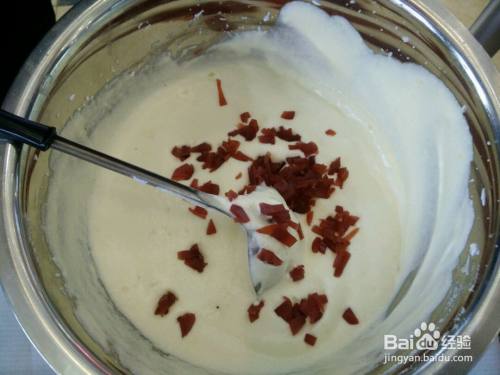 用打蛋器搅拌均匀,提起打蛋器时糊可顺畅流下,放置备用
