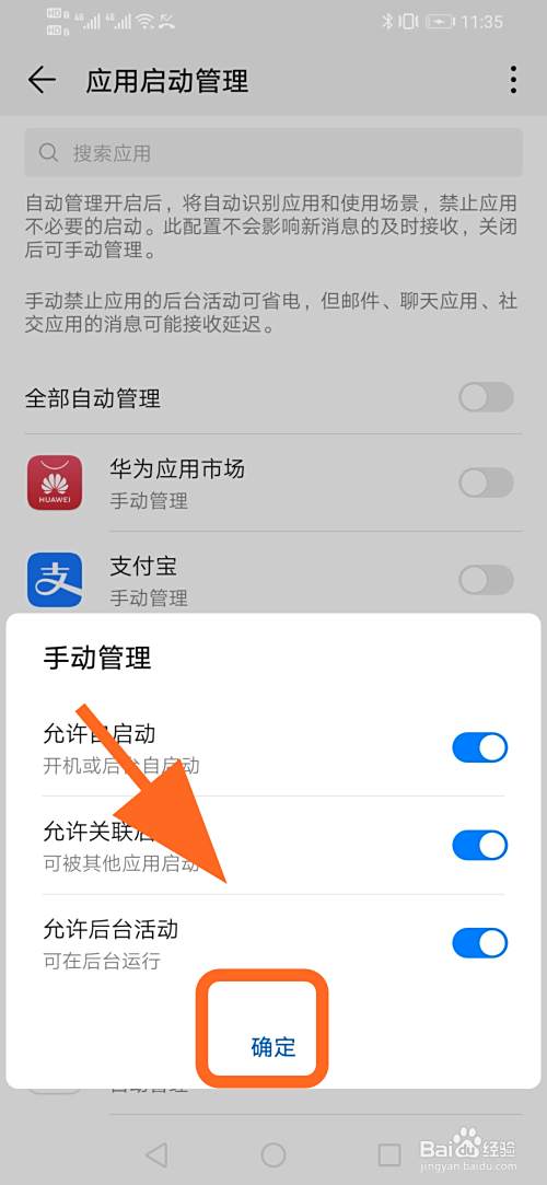 进入应用启动管理,以【华为应用市场】为例,打开后边的【开关】进入自动管理;