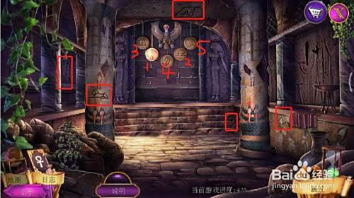 这个游戏需要通过三个场景。第一个场景的五个符号及点击顺序如下图。