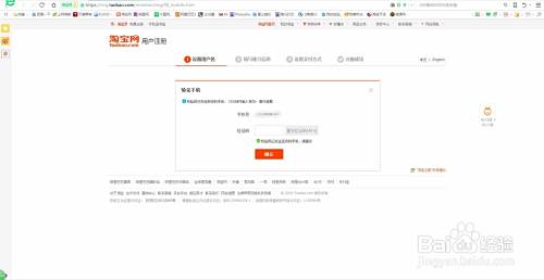 弹出验证码窗口,这时手机就会接收一条淘宝“验证码”,把验收码输入到填写验证码的位置,点击确认。就会弹出下一步操作窗口。