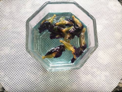 1蝶豆花加入沸水,泡出颜色,放凉,过滤备用