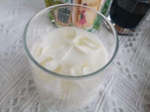 5加入适量冰块,也可以放凉粉芋圆之类可以吃的