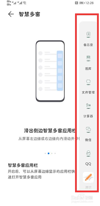 进入智慧多窗界面后,点击“智慧多窗应用栏”。