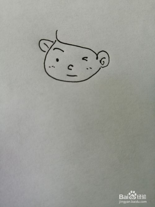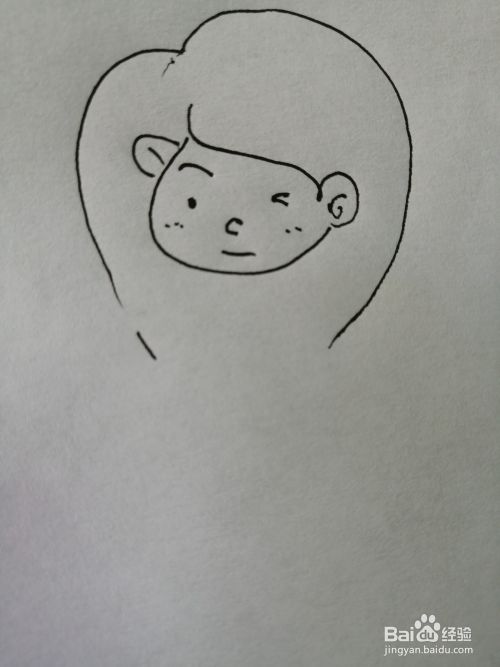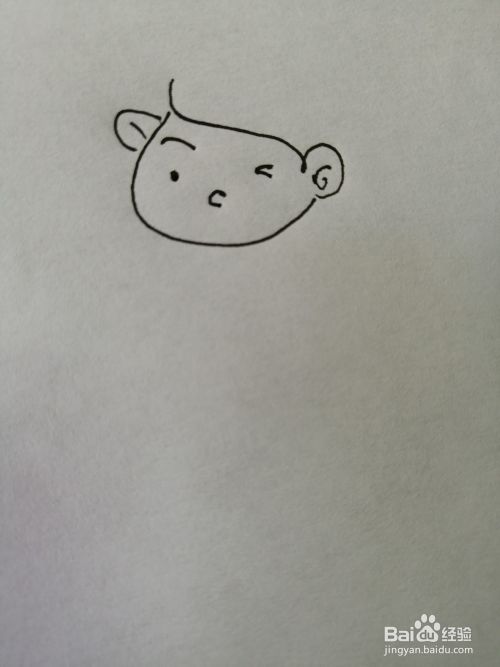 第二步,接着在可爱的女孩的脸部里面画出一个眼睛和鼻子以及微笑嘴巴。