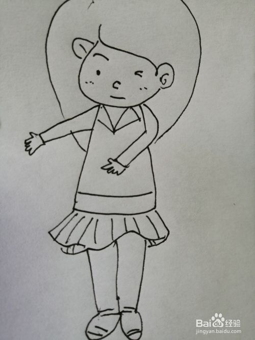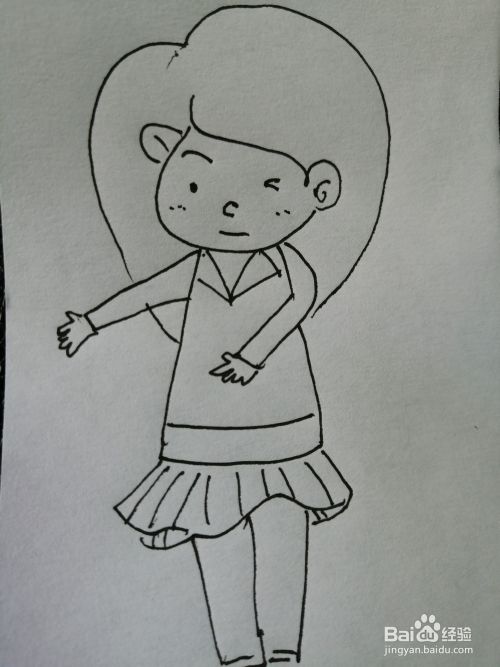 第七步,最后把可爱的女孩的两条大长腿画出来。可爱的女孩就画好了。