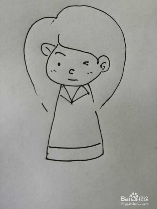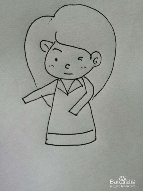 第四步,然后把可爱的女孩的衣服部分画出来,衣服上还有一个领结。