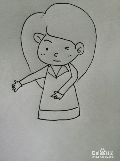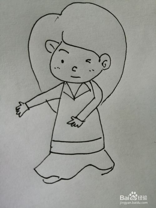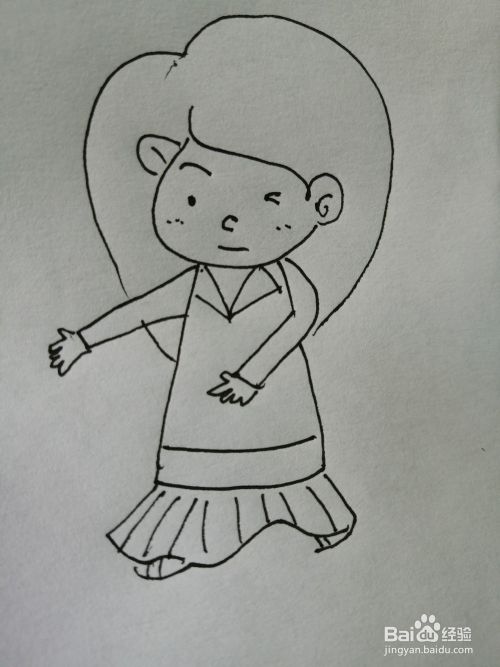 第六步,然后把可爱的女孩的裙摆部分画出来。