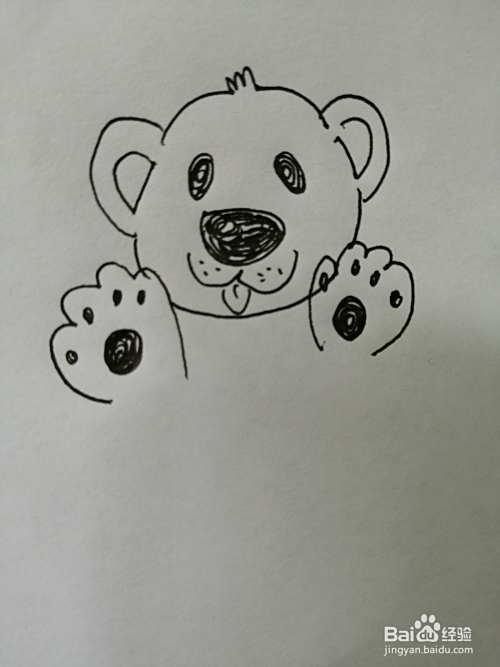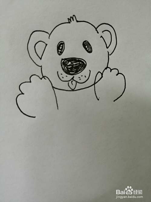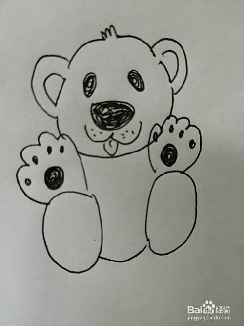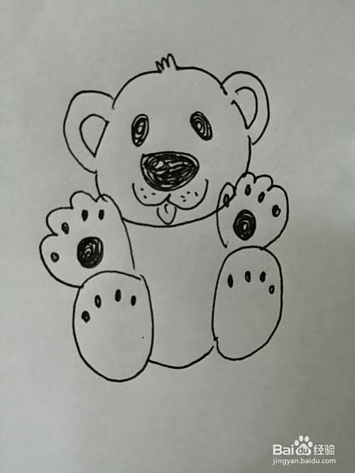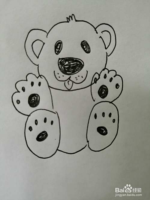 第七步,最后把可爱的小熊的脚掌上的花纹画完整。可爱的小熊就画好了。