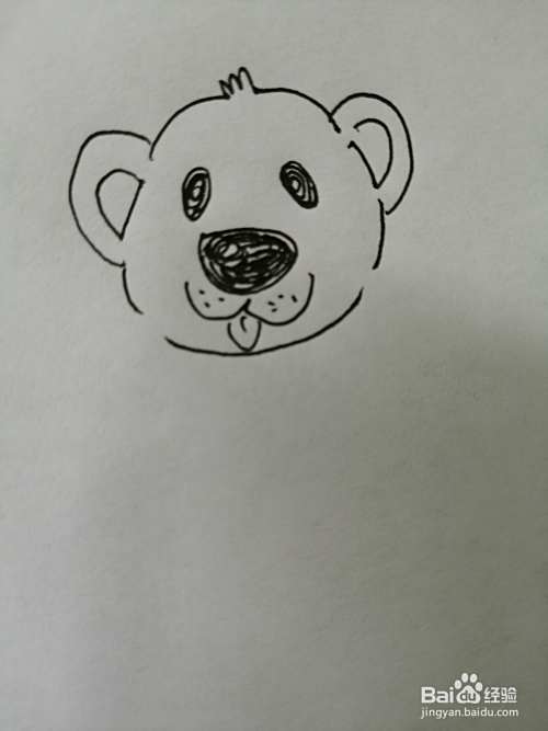 第三步,然后继续画出可爱的小熊的小嘴巴,注意小熊舌头的画法。
