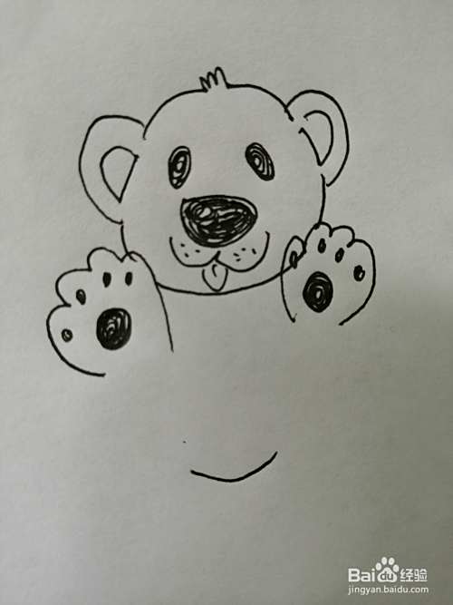 第四步,然后继续画出可爱的小熊的两只手臂,小熊的小手画法比较简单