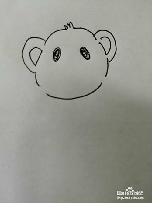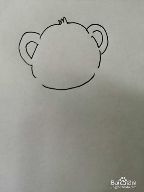第一步,我们先把可爱的小熊的头和两只可爱的耳朵画出来,注意耳朵轮廓的画法。