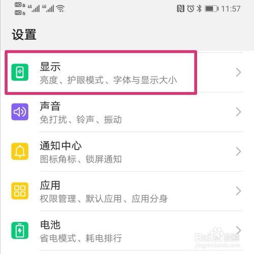 1、打开华为手机,点设置,点击显示。点屏幕分辨率。