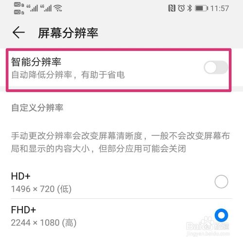 还可以点击智能分辨率,智能分辨率可以根据电量自动调节屏幕分辨率。