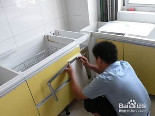 二是进行吊柜的安装,吊柜的安装注意把手和家人一般高度需求。