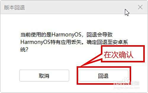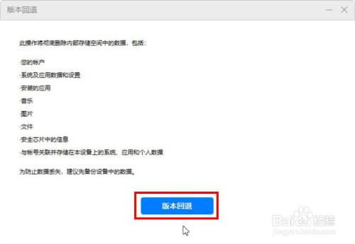 确保重要数据已备份好,点击“版本回退”,再次点击“回退”进行确认