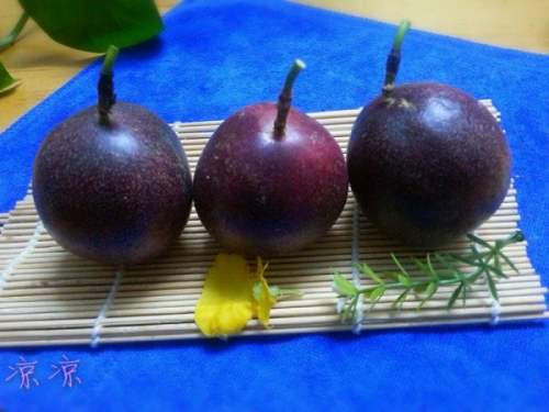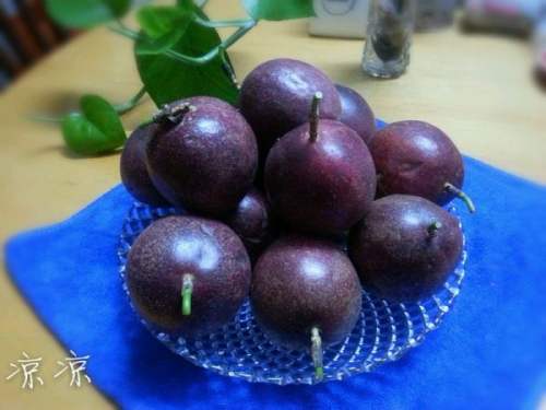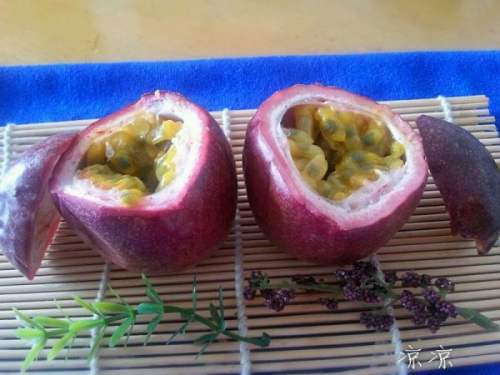 百香果—年四季都长青~循环生长挂果~果实成熟时外表呈深紫色~切开果皮里面果肉呈淡黄色~吃进嘴里有一股淡淡的清香味~果汁酸酸甜甜~做成饮料配上蜂蜜入冰箱一小时再拿出来喝~整个人就立马精神气爽~让人甚是喜爱。
