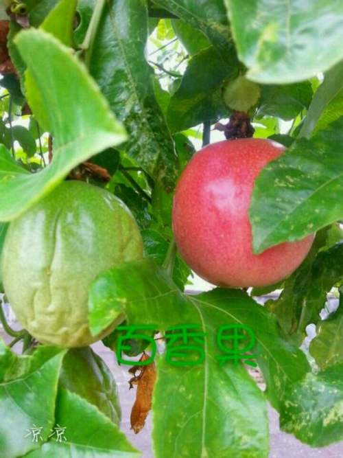 1看,这就是百香果啦,图拍于本人妈妈在天台上种植的果实,未成熟的果是绿色和果粉色。很诱人吧!中国人称它为水果之王!