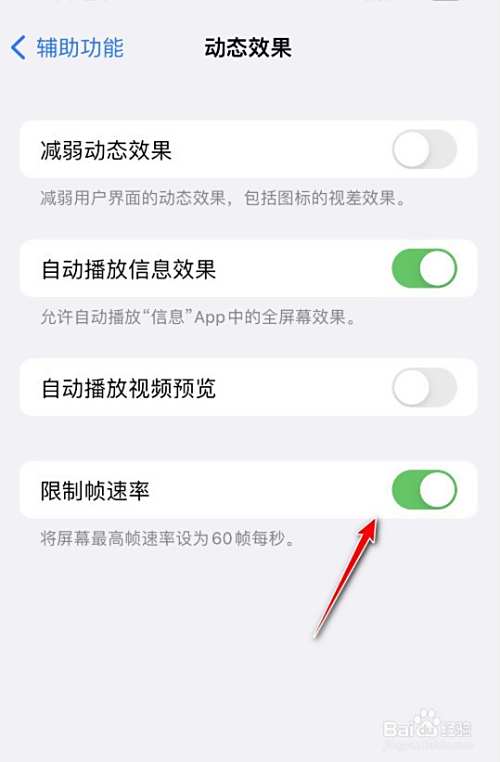 iPhone13promax默认开启屏幕高刷新,在手机自带设置中的辅助功能可设置,将动态效果取消帧率限制即可。