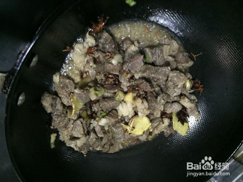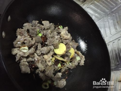 出香味后放入准备好的牛腩,翻炒2~3分钟