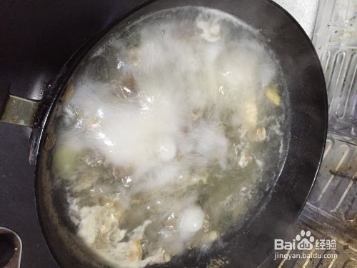 加热水淹没牛腩,用锅铲在水中翻几下,翻匀