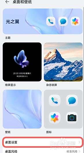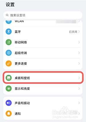 2、想要关闭,可通过手机中的【设置】,找到【桌面和壁纸】来设置;