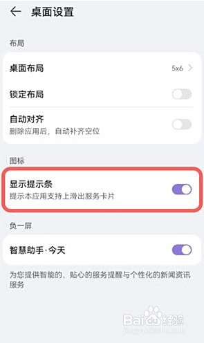 4、将桌面设置中【显示提示条】右侧的滑块关闭;
