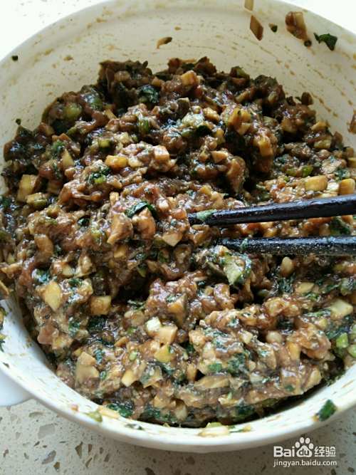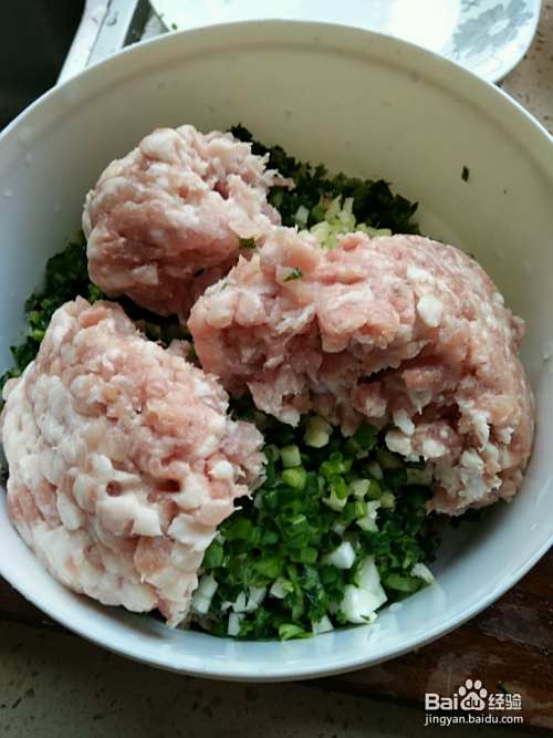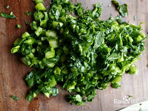 青菜切末,换其他蔬菜也可以,主要是增加肉馅的软嫩。