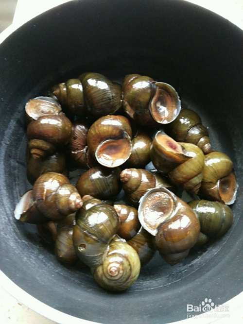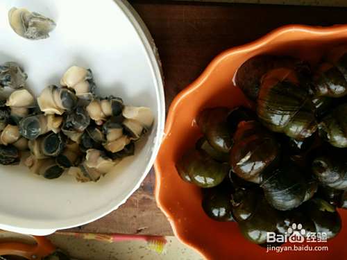田螺养半天,田螺剪掉一点点,把壳刷干净。