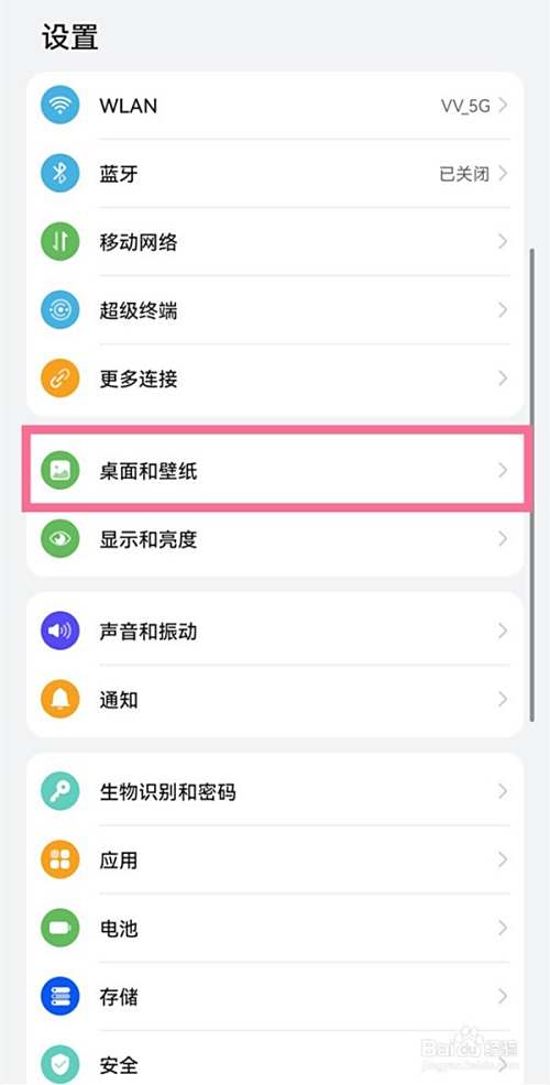 第一步,在手机设置菜单下点击【桌面和壁纸】。