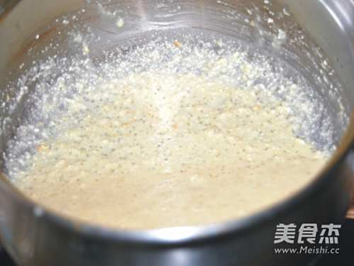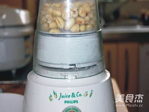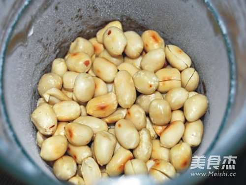 7然后加入打好的花生,加糖,盐,搅拌均匀后关火