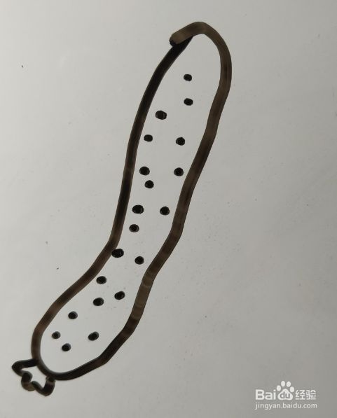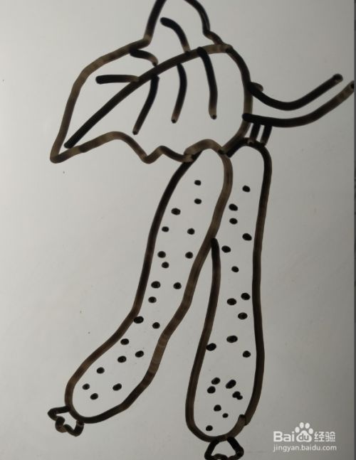 在叶子上画出叶脉。黄瓜的儿童画就完成了。如图所示。