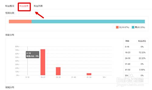 点击粉丝画像,可以看见粉丝的年龄、性别、区域甚至是手机系统等等信息的分布情况,为自己的文章或视频创作提供了很有力的分析数据。