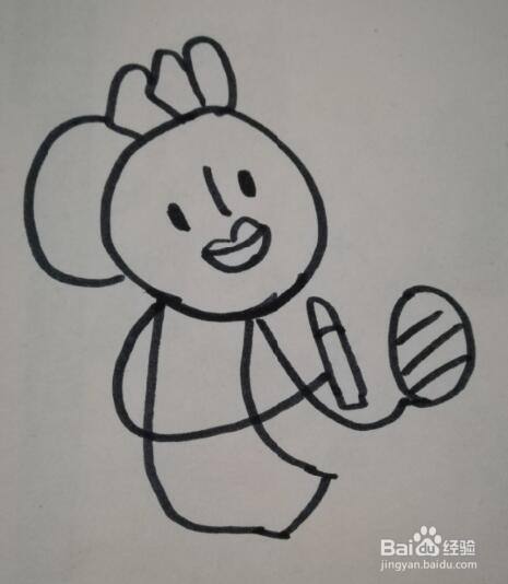第四步,如图所示,画出卡通女孩的另一侧胳膊及手里的镜子。