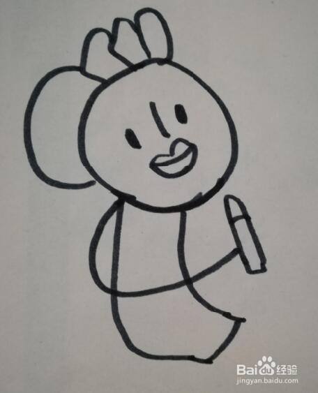 第三步,如图所示,画出卡通女孩的一侧的胳膊及身体。