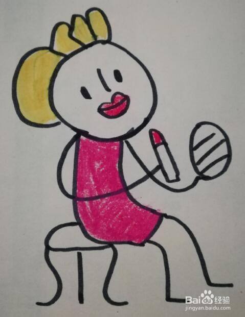 最后一步,如图所示,给卡通女孩涂上自己喜欢的颜色,完成。